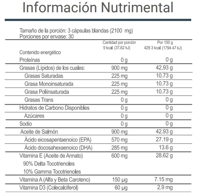 Tamaño de la porción: 3 cápsulas blandas (2100 mg)