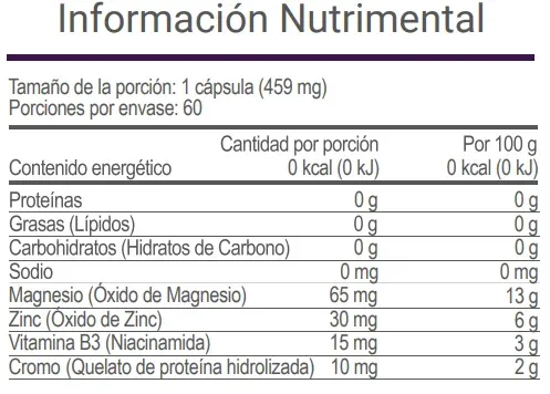 | Chromium (Hydrolyzed Protein Chelate) | 10mg | 2g |