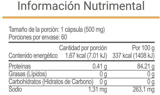 Tamaño de la porción: 1 cápsula (500 mg)
